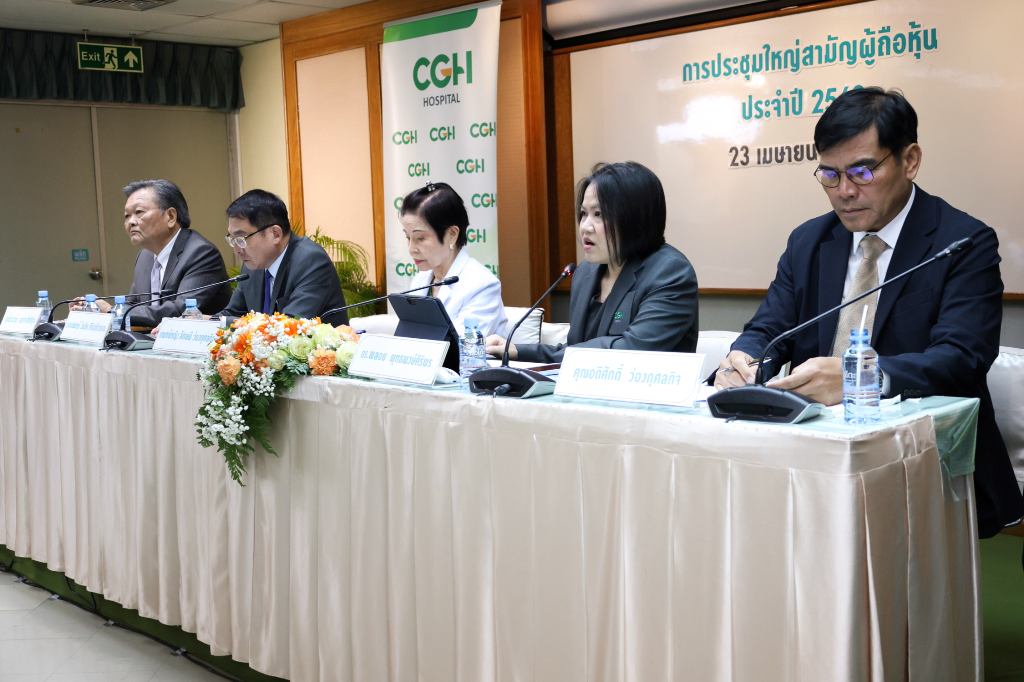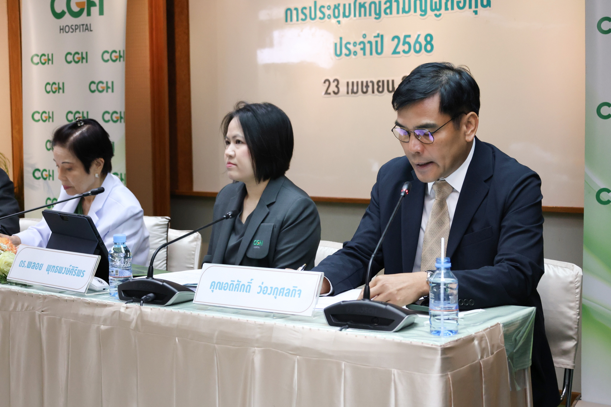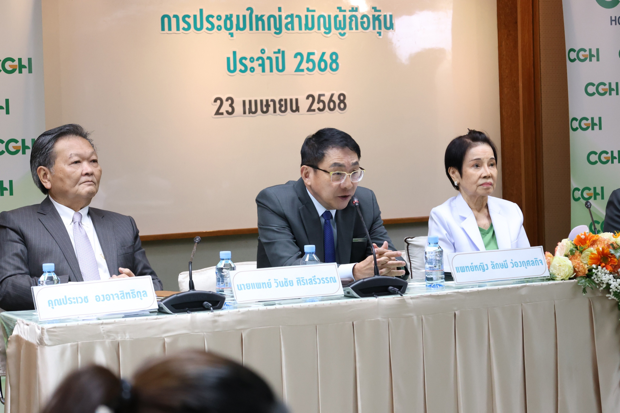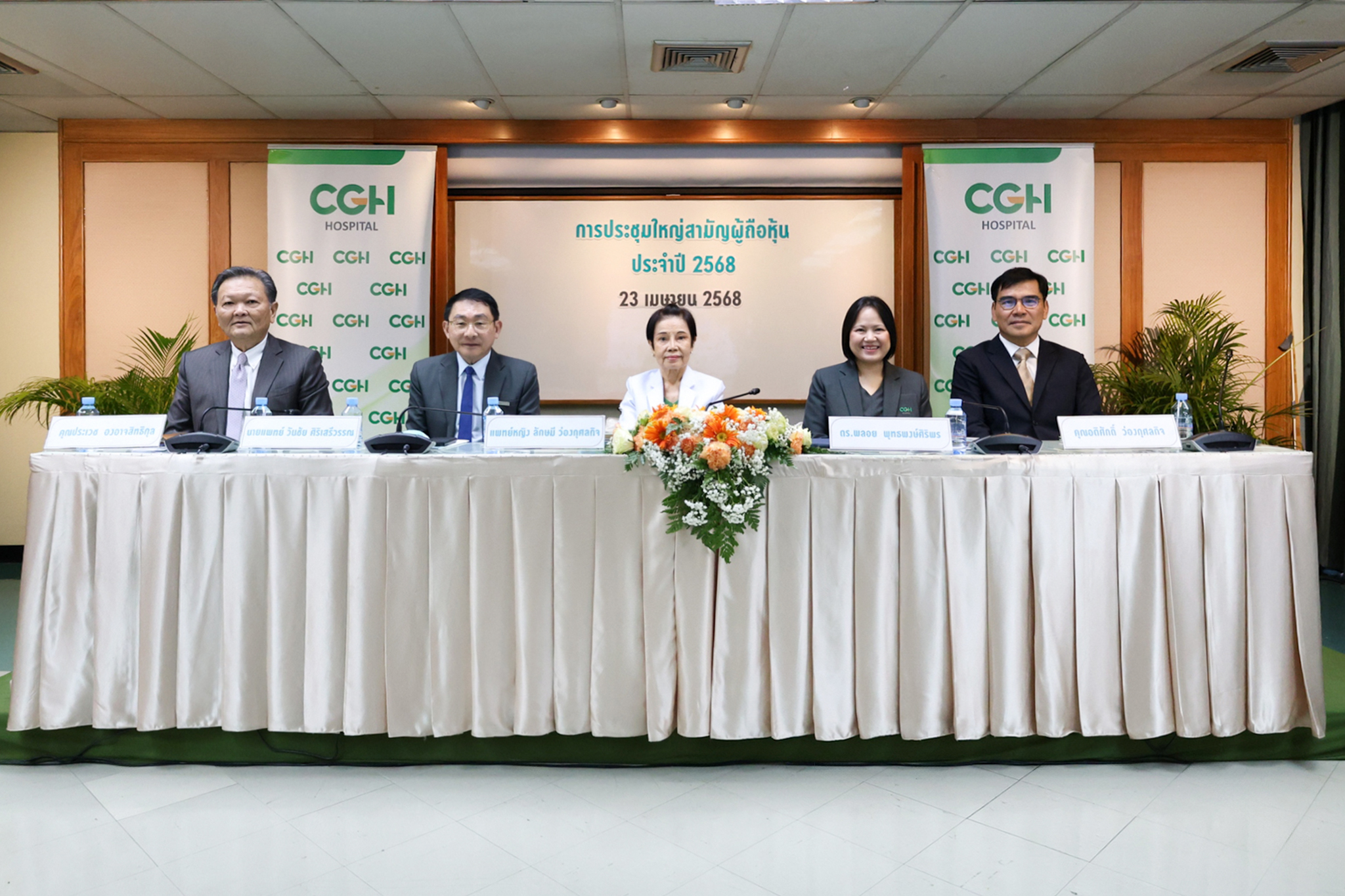 กรุงเทพฯ, 23 เมษายน 2568 — กลุ่มโรงพยาบาลซีจีเอช (CGH Hospital Group) จัดประชุมสามัญผู้ถือหุ้นประจำปี 2568 เพื่อนำเสนอผลประกอบการปี 2567 ที่เติบโตอย่างต่อเนื่อง พร้อมเผยแผนกลยุทธ์ปี 2568 ที่มุ่งยกระดับคุณภาพการบริการทางการแพทย์ด้วยนวัตกรรมและเทคโนโลยีล้ำสมัย