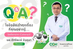 โดย นพ.อิทธิพงษ์ บินอุมา คำถาม: 1. โรคต้อกระจกคืออะไร ? คำตอบ : การตaคำตอบ : โรคต้อกระจกเกิดจากความขุ่นของเลนส์แก้วตา ซึ่งปกติแล้