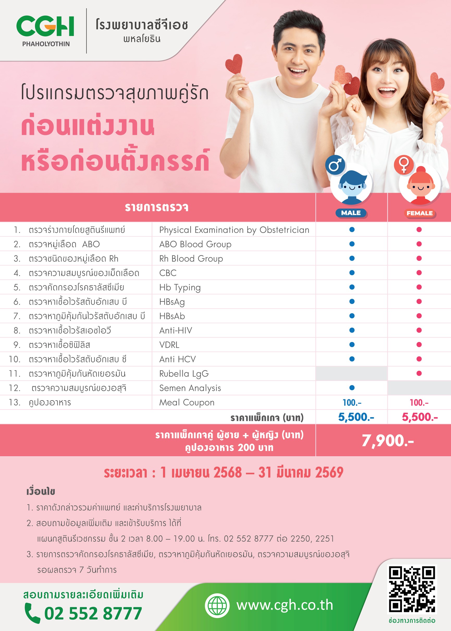 1. ราคาดังกล่าวรวมค่าแพทย์ และค่าบริการโรงพยาบาล