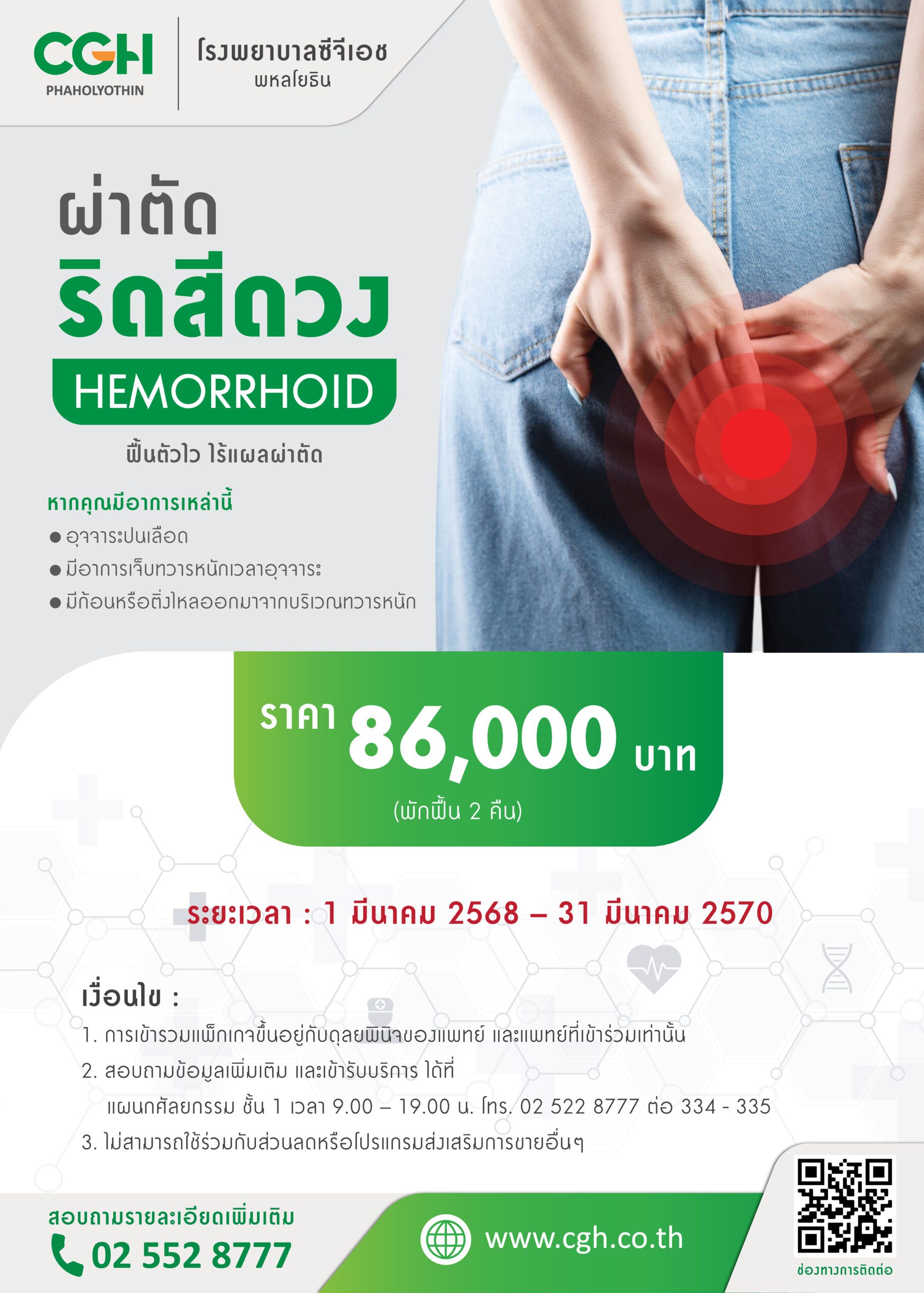 | 1 | ผ่าตัดริดสีดวงทวาร (Hemorrhoid) (Admit 2 คืน) | 86,000 | BDDOR68001 |