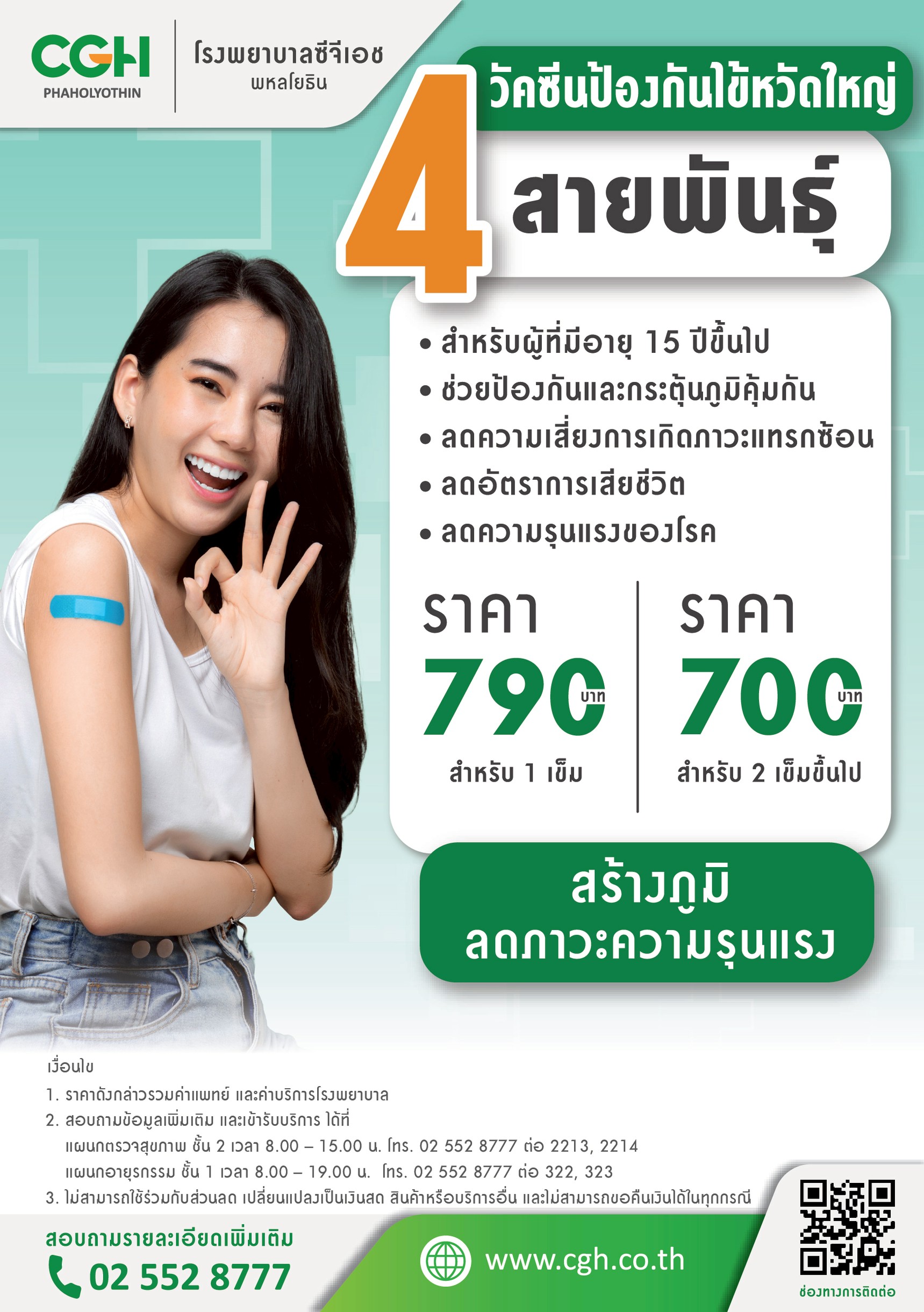 | 2 | วัคซีนป้องกันไข้หวัดใหญ่ Influenza Vaccine (สำหรับ 2 ท่านขึ้นไป) | 700.- |
