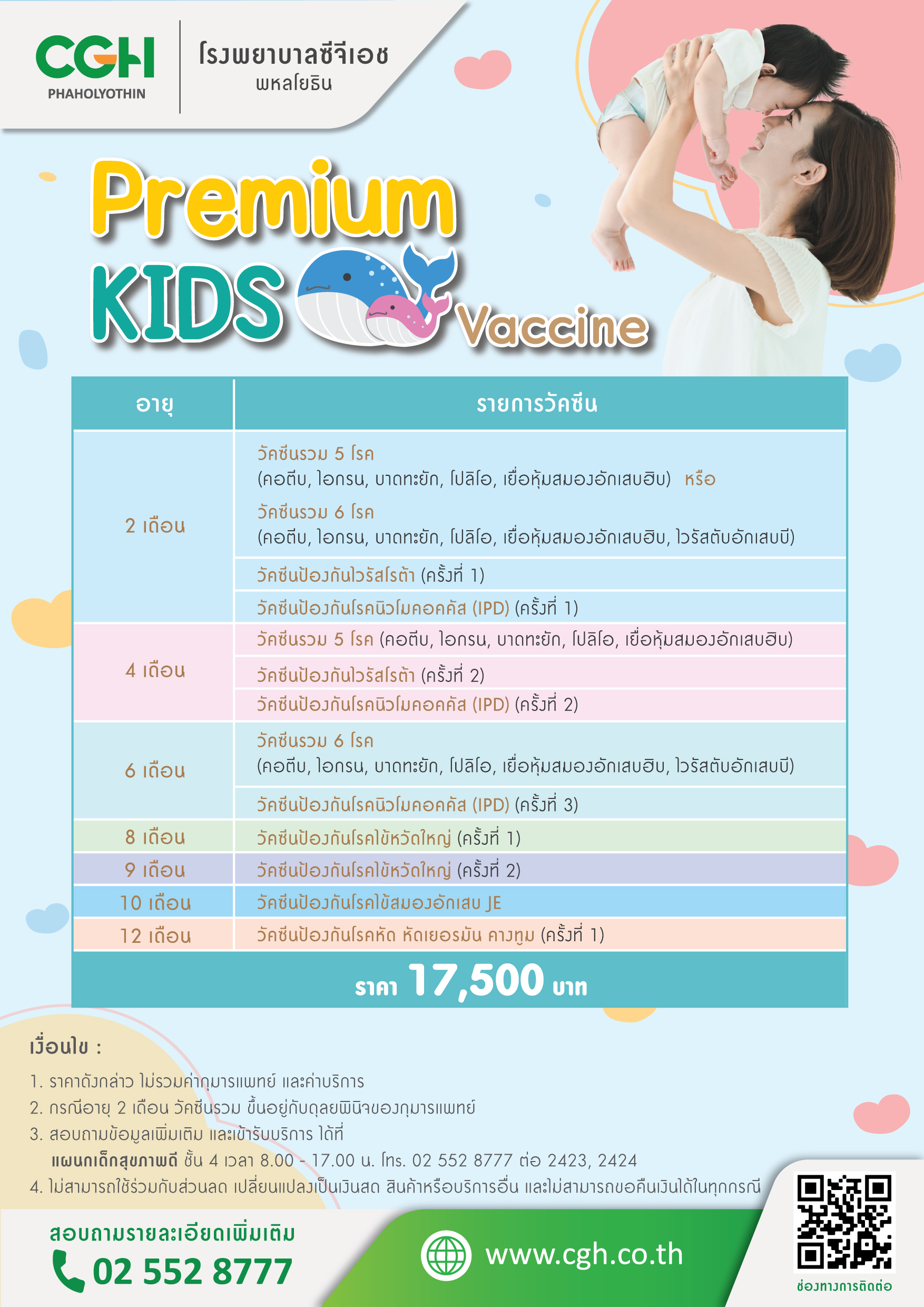 1. ราคาดังกล่าว ไม่รวมค่ากุมารแพทย์ และค่าบริการ
